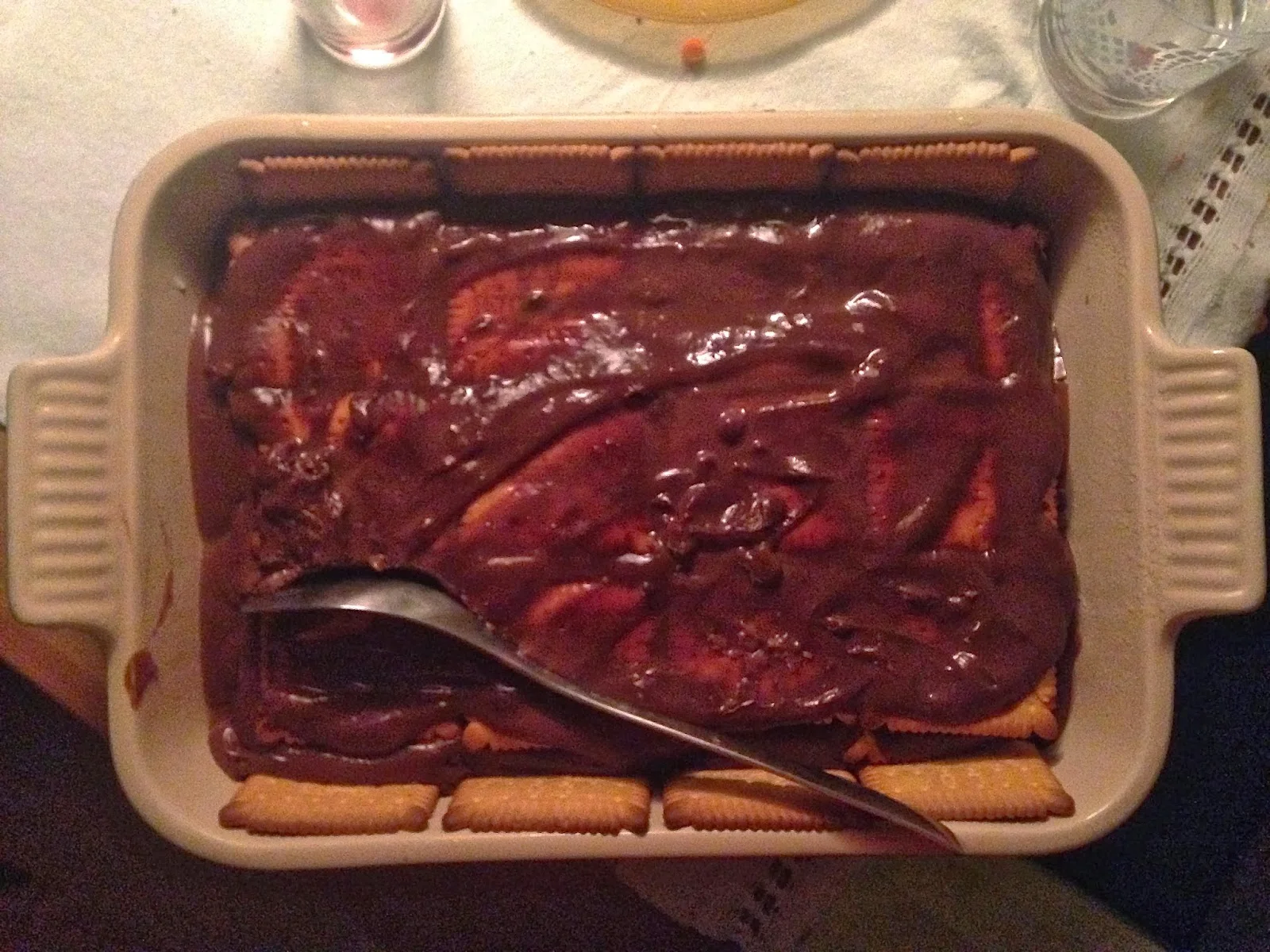 Chocolate pudding and tea biscuit cake (that's all it is, pudding and tea biscuits :)