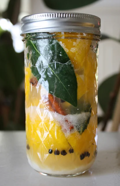 Preserved lemons are some of the easiest of preserved foods to make. They involve little other than lemons, salt, and sanitized mason jars (just boil the jars totally submerged in water, lids off, for 10-12 minutes). You can flavor them with whatever spices you like - although I'm partial to the combination of black pepper, bay, and cinnamon. A friend gifted me a jar of lemons she preserved with fennel seed and pink pepper corn, which was lovely.